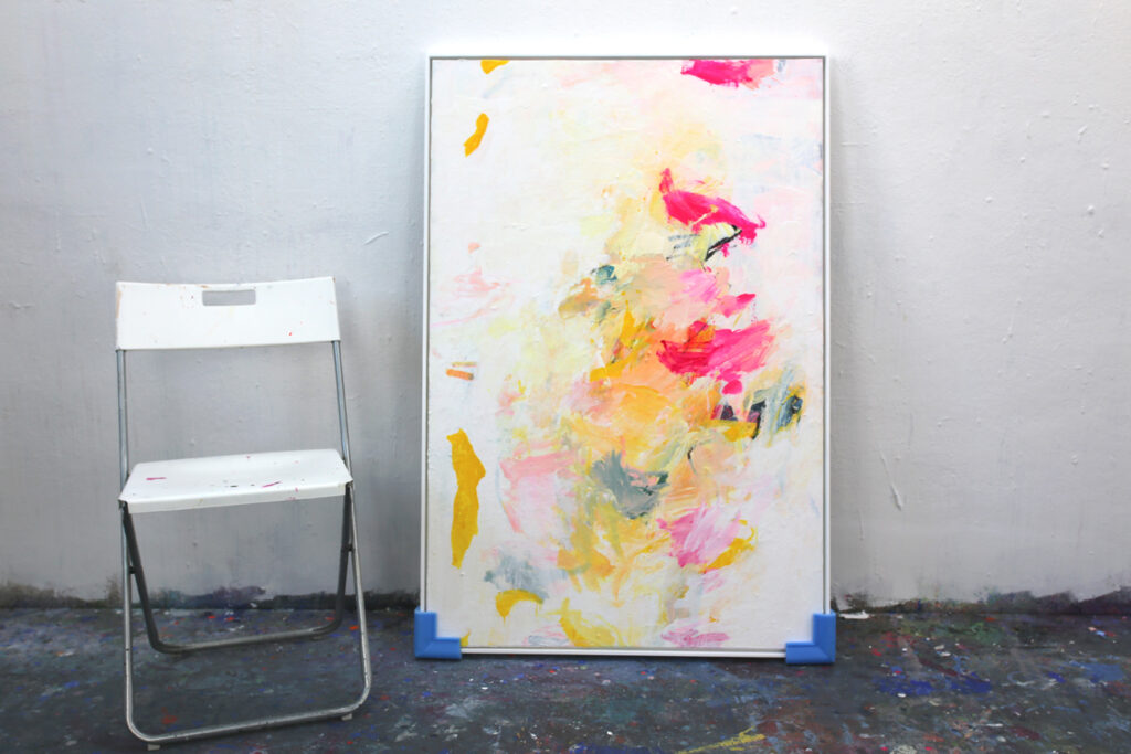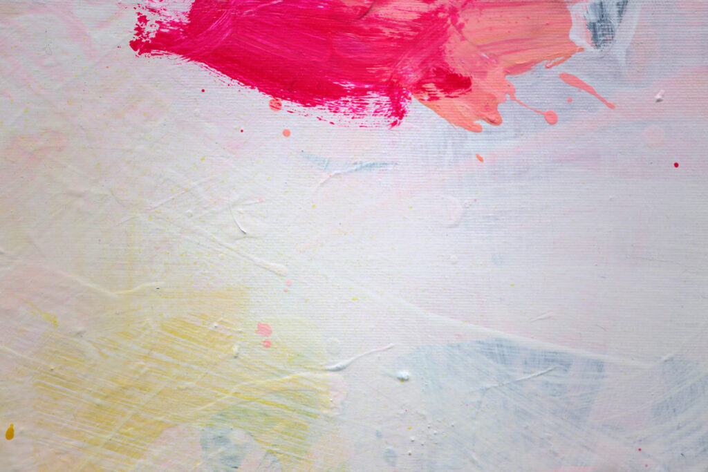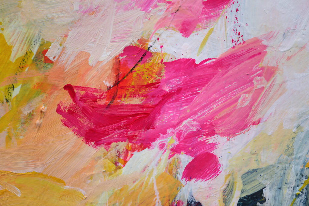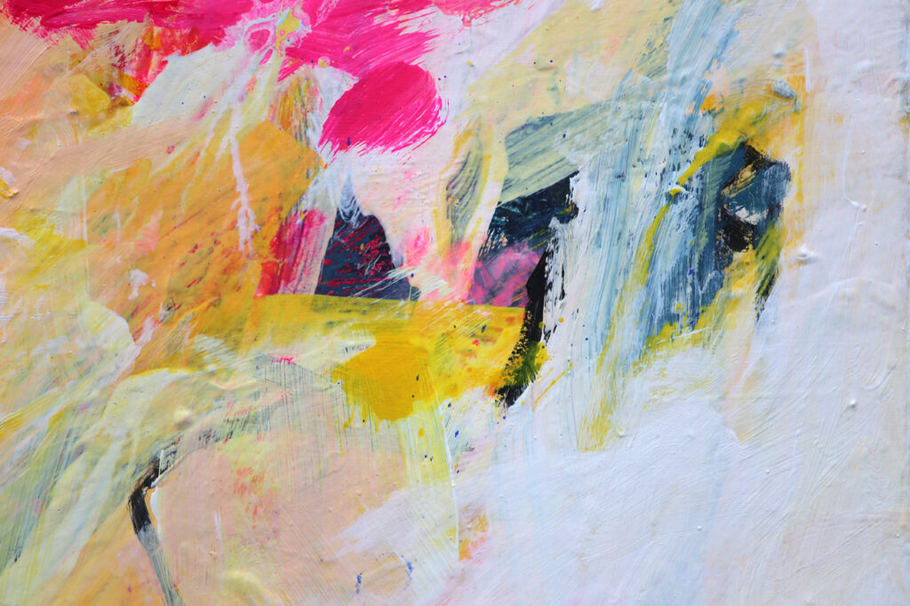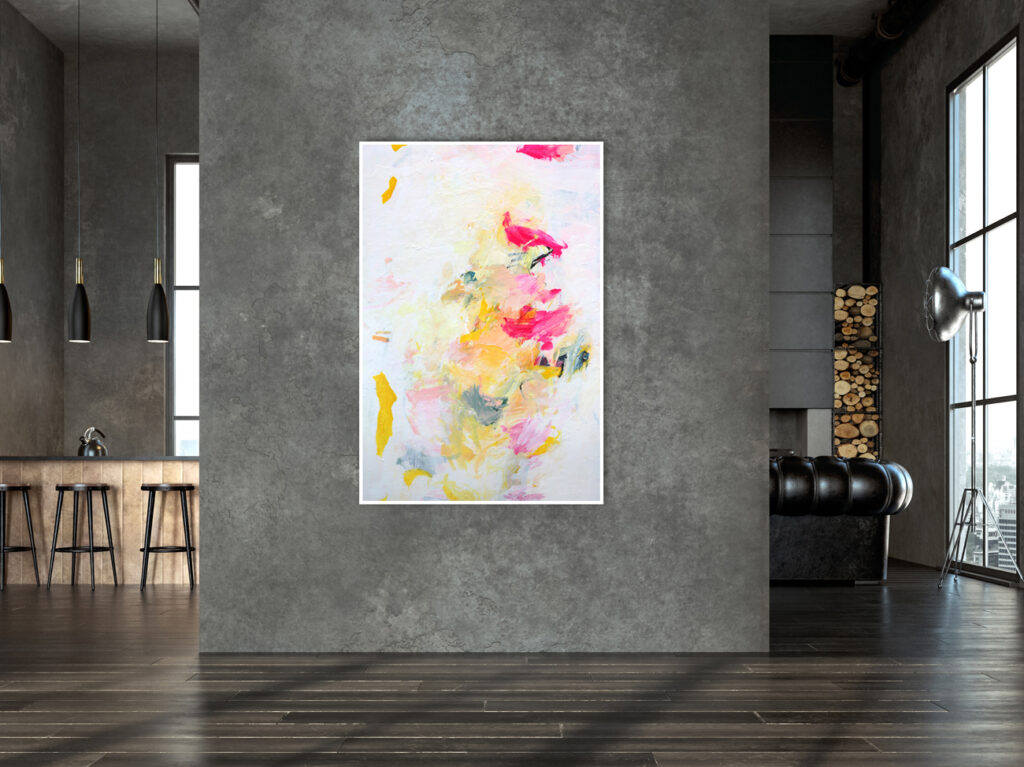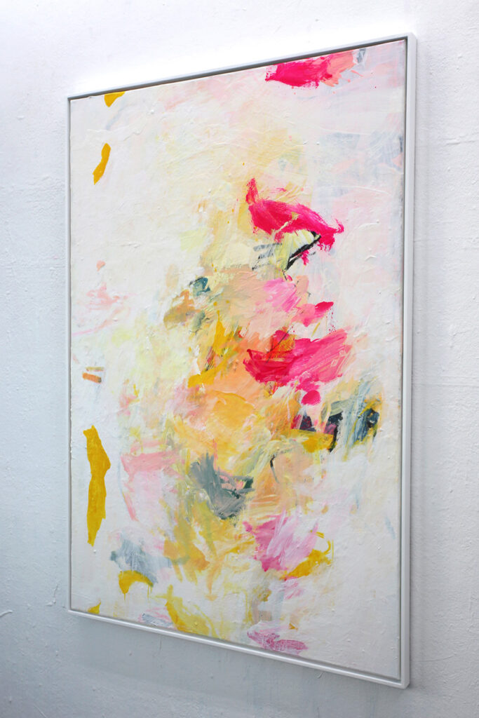 Das abstrakte Gemälde „Ab jetzt gibt’s nur noch positive Nachrichten! – Nr. 1″ ist das erste Bild einer Serie von Acrylbildern, in denen Neonpink und Gelb dominieren. Immer kombiniert mit viel Weiß. Dadurch entsteht eine extrem freundliche, freudige, gute Laune machende und alles Schlechte vertreibende Bildwirkung – ohne dass die Bilder dabei in den Kitsch abdriften.