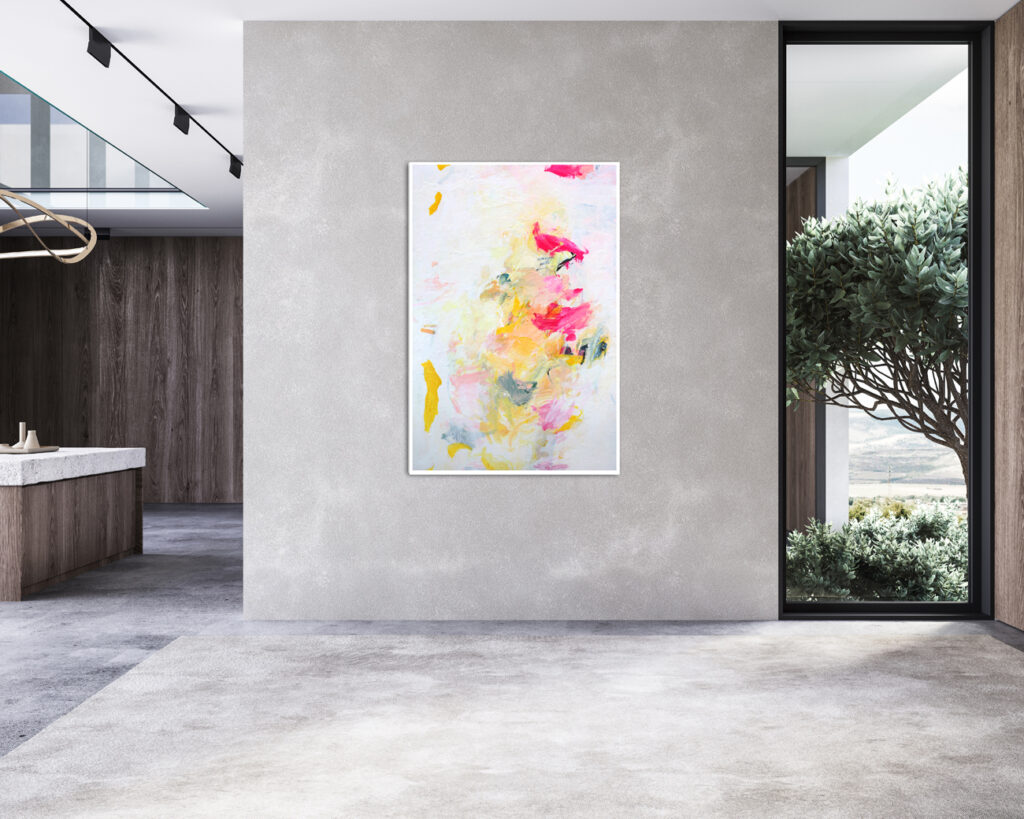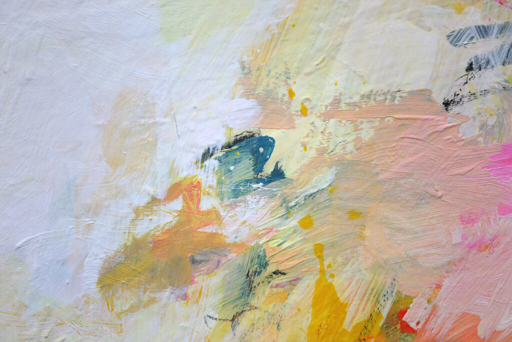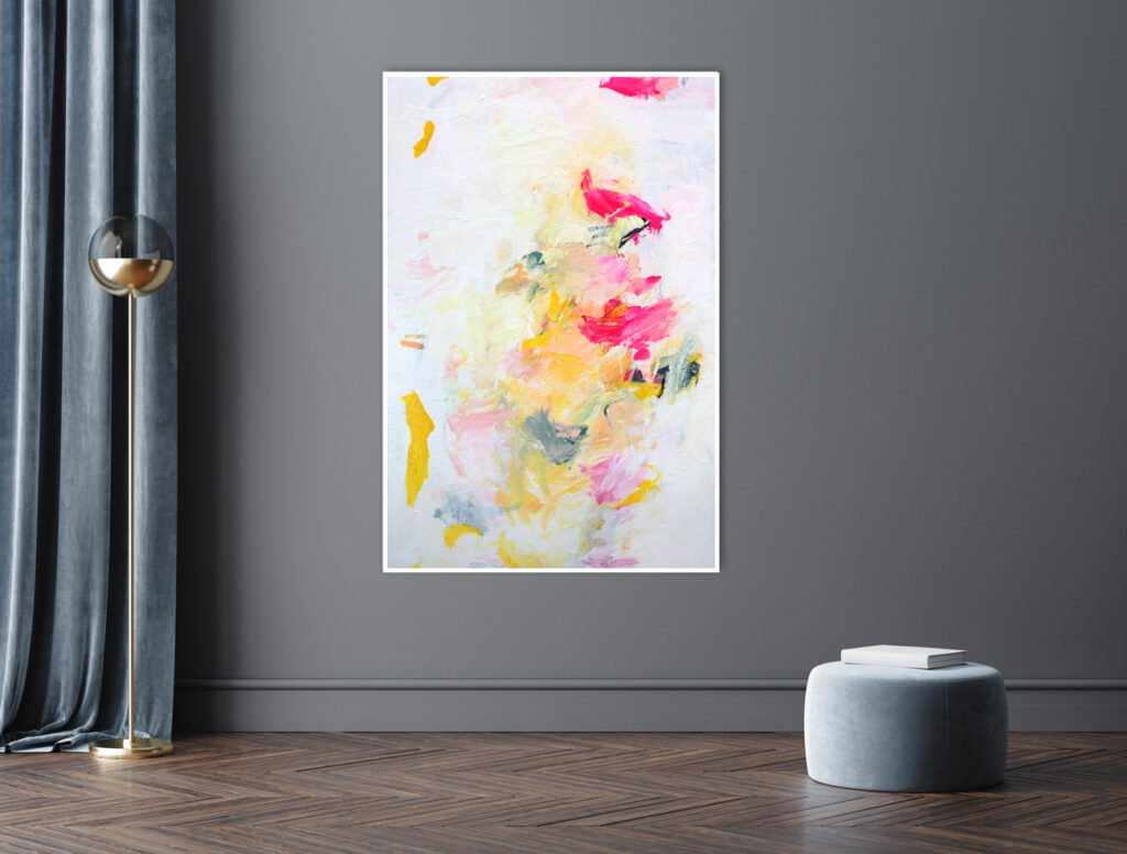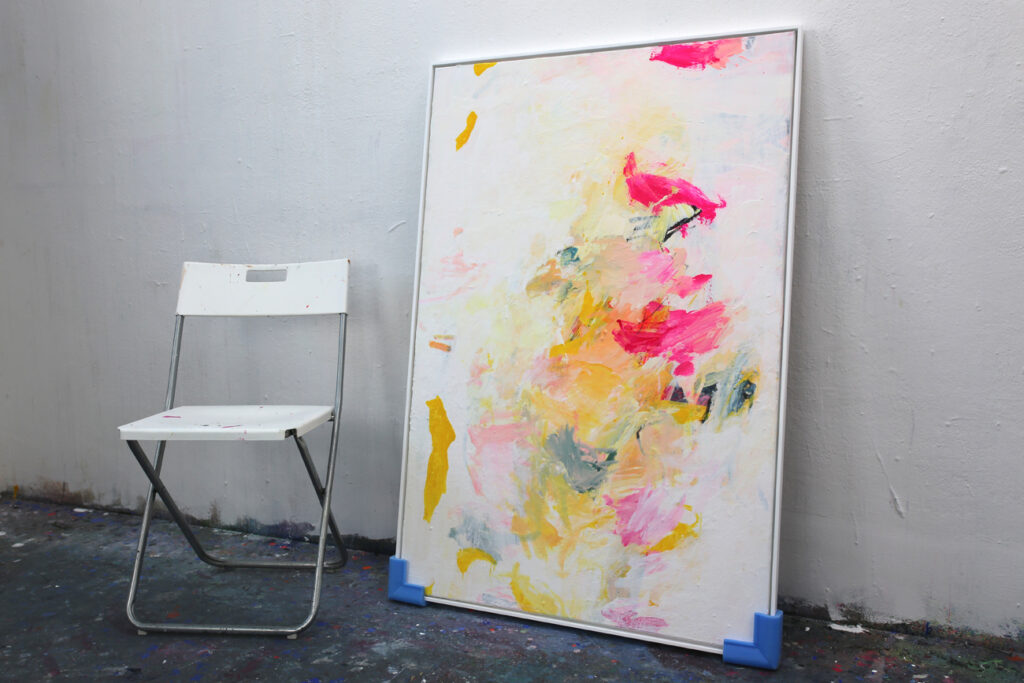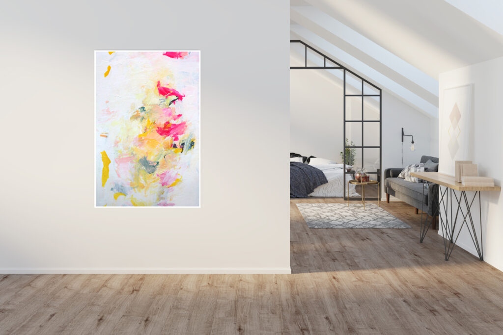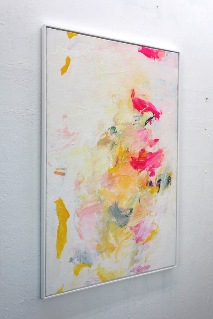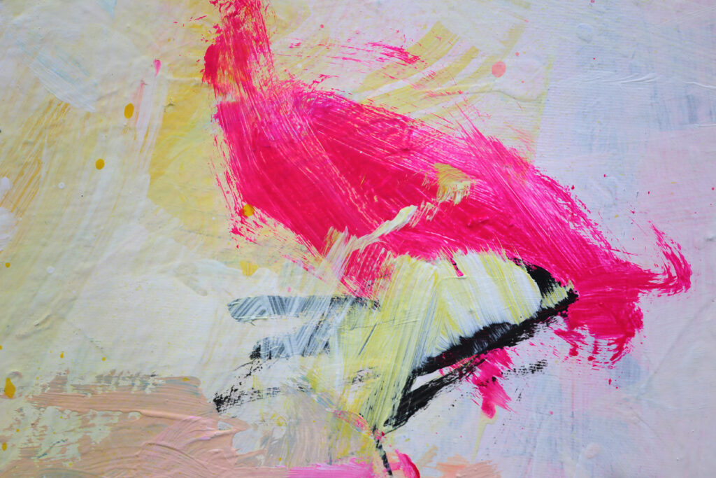Das abstrakte Gemälde „Ab jetzt gibt’s nur noch positive Nachrichten! – Nr. 1″ ist das erste Bild einer Serie von Acrylbildern, in denen Neonpink und Gelb dominieren. Immer kombiniert mit viel Weiß. Dadurch entsteht eine extrem freundliche, freudige, gute Laune machende und alles Schlechte vertreibende Bildwirkung – ohne dass die Bilder dabei in den Kitsch abdriften.