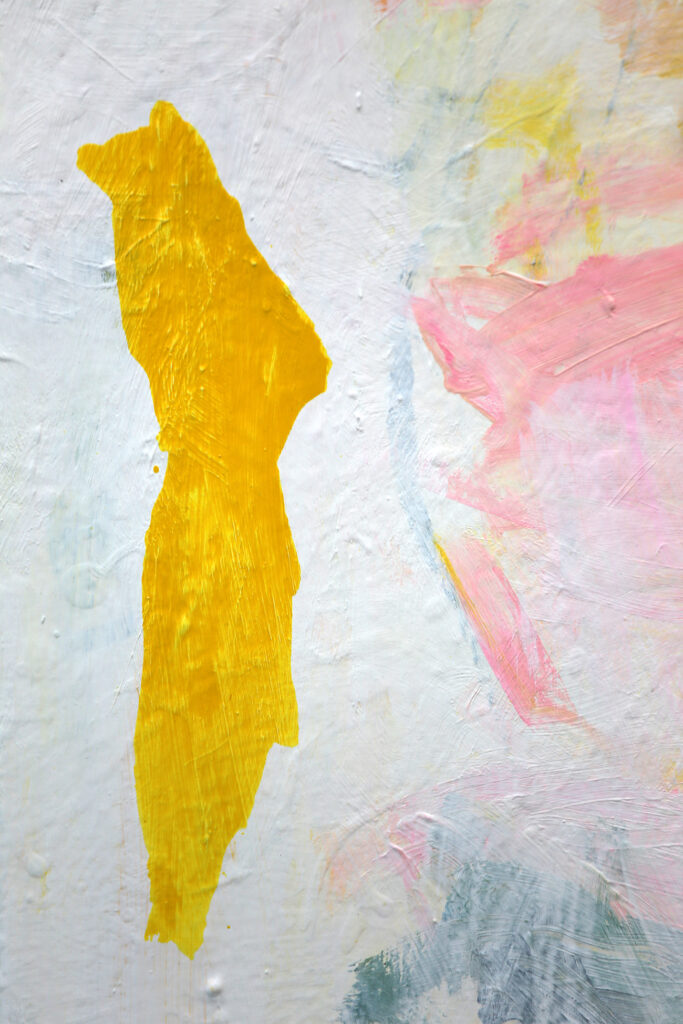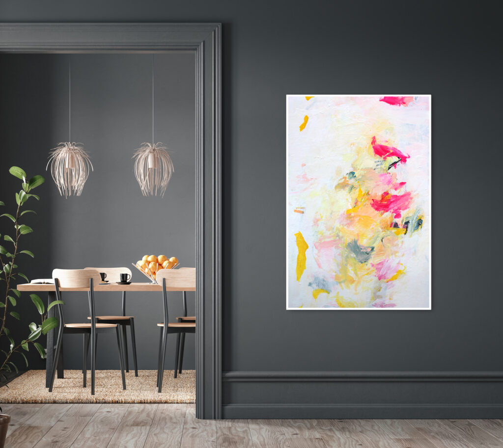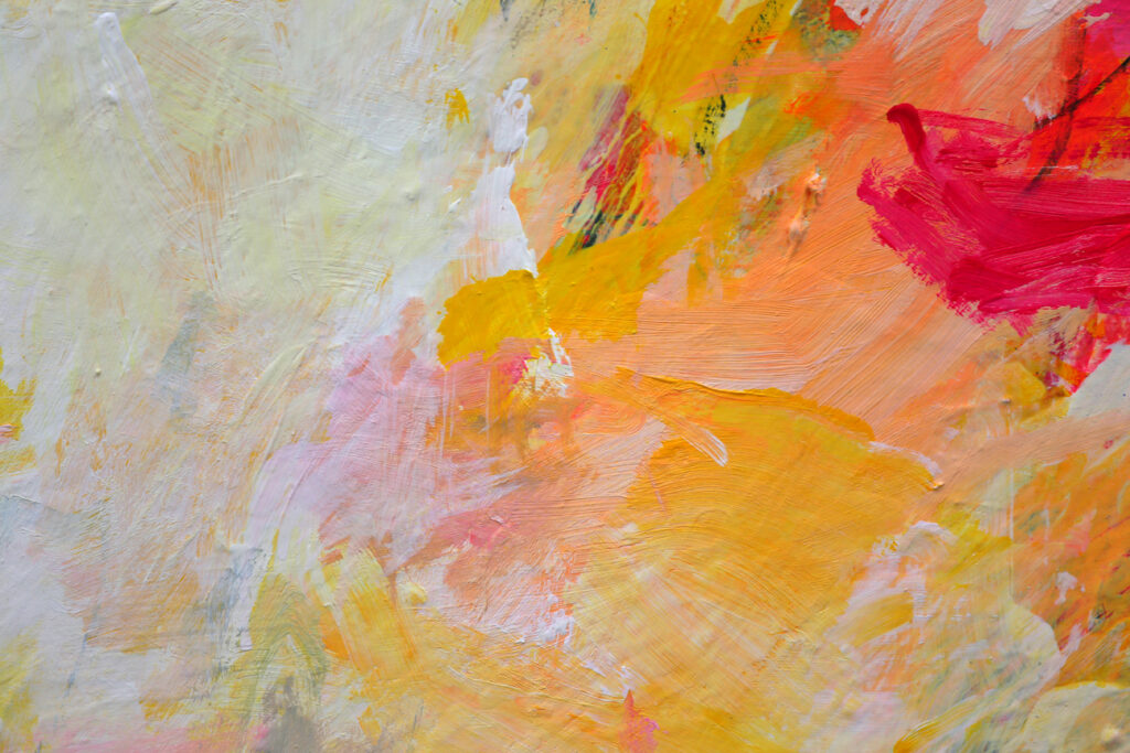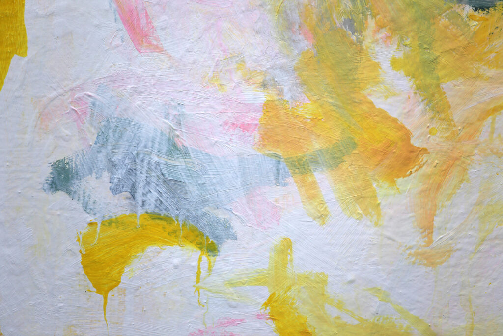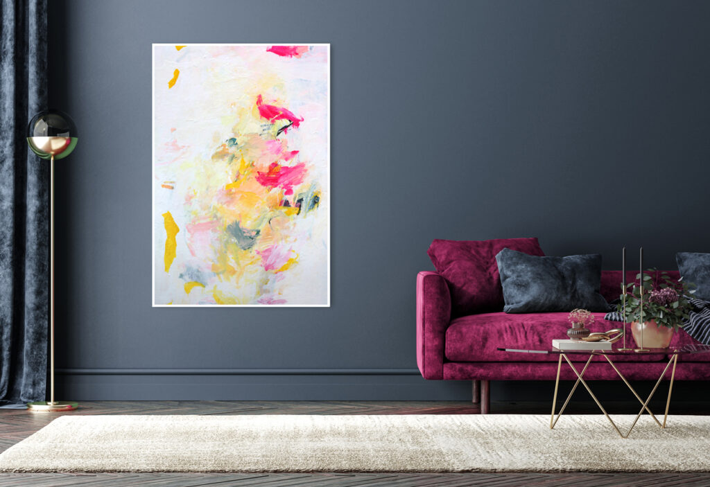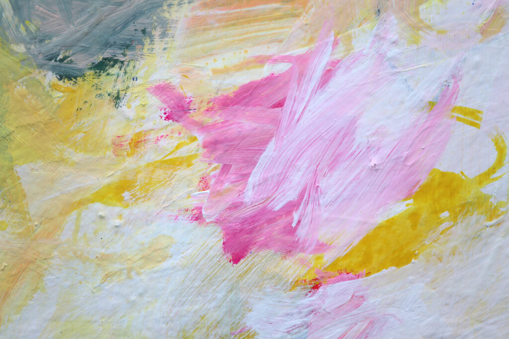 Das abstrakte Gemälde „Ab jetzt gibt’s nur noch positive Nachrichten! – Nr. 1″ ist das erste Bild einer Serie von Acrylbildern, in denen Neonpink und Gelb dominieren. Immer kombiniert mit viel Weiß. Dadurch entsteht eine extrem freundliche, freudige, gute Laune machende und alles Schlechte vertreibende Bildwirkung – ohne dass die Bilder dabei in den Kitsch abdriften.