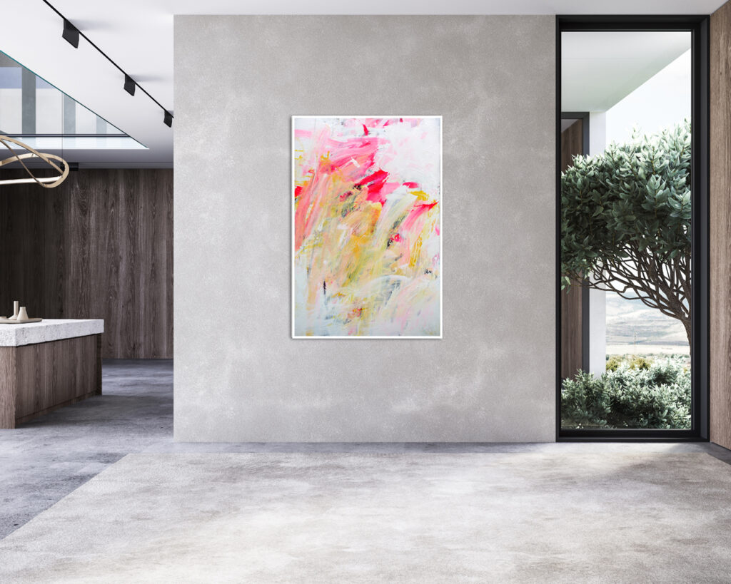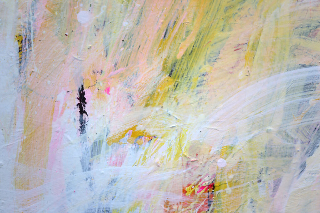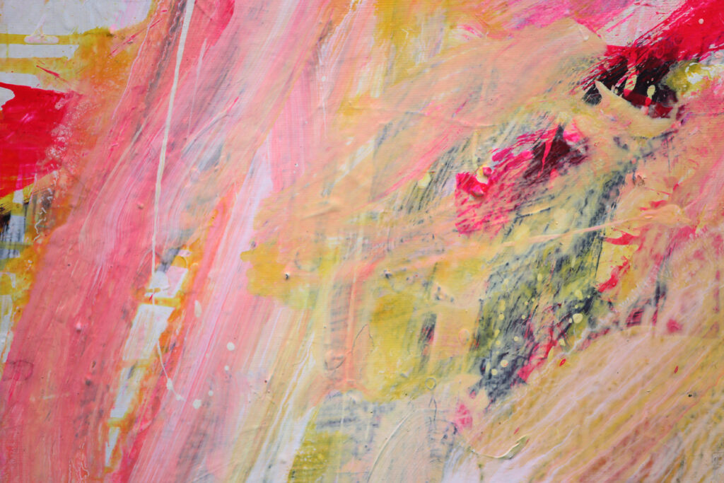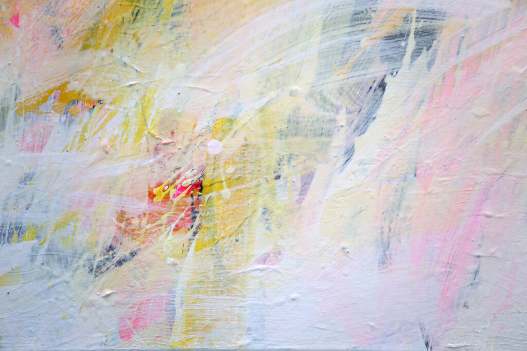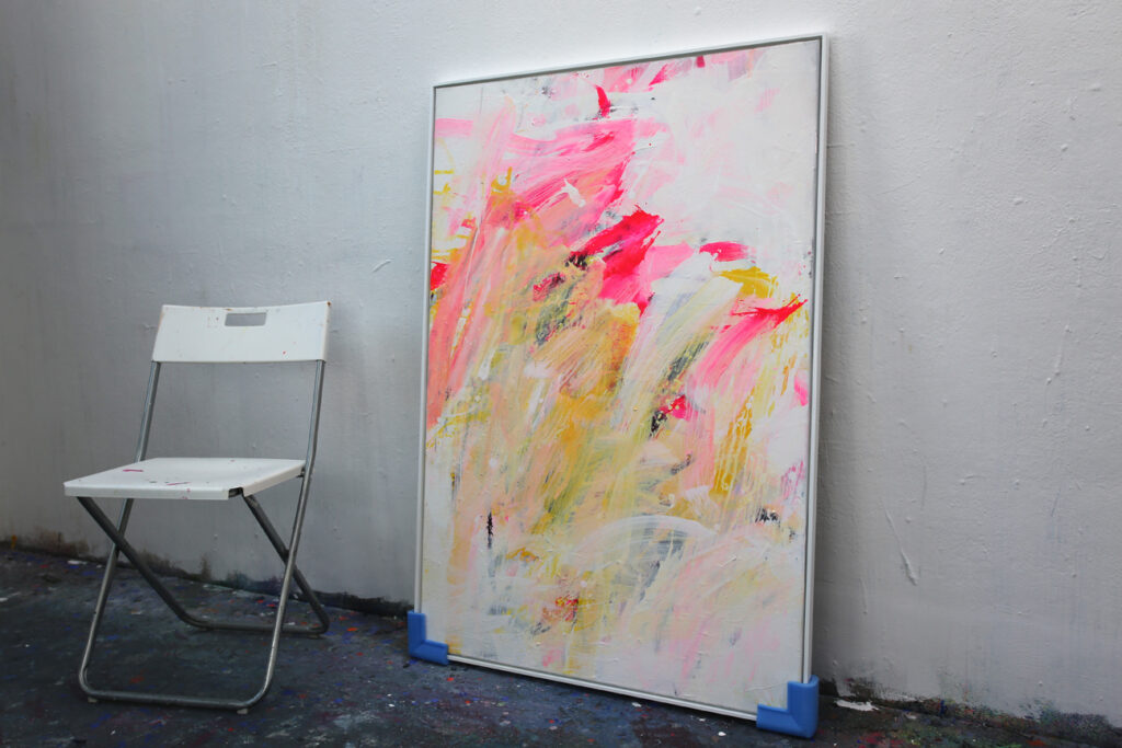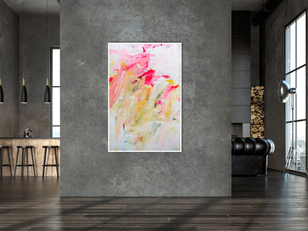 Das abstrakte Gemälde „Ab jetzt gibt’s nur noch positive Nachrichten! – Nr. 1″ ist das erste Bild einer Serie von Acrylbildern, in denen Neonpink und Gelb dominieren. Immer kombiniert mit viel Weiß. Dadurch entsteht eine extrem freundliche, freudige, gute Laune machende und alles Schlechte vertreibende Bildwirkung – ohne dass die Bilder dabei in den Kitsch abdriften.
