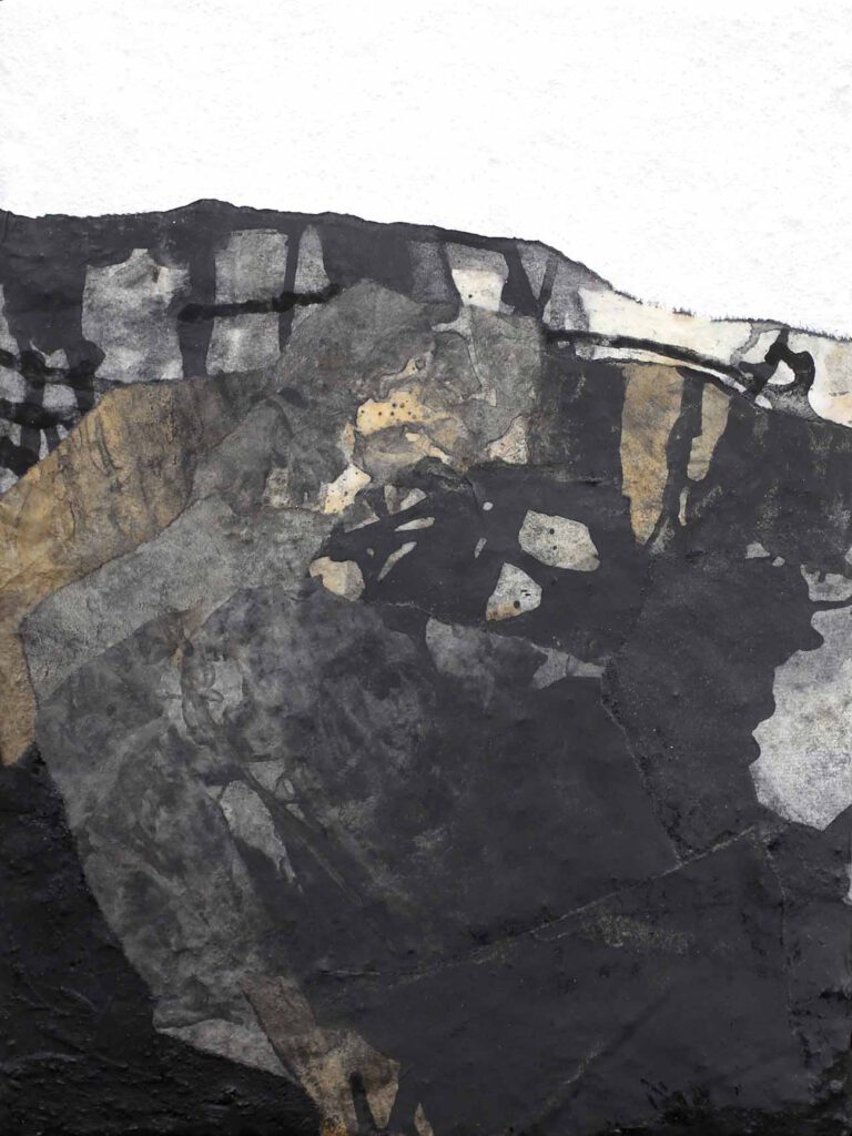 Dimensions: 30x40x6cm, abstract painting with pigments, coffee and China paper, on wood, 2024