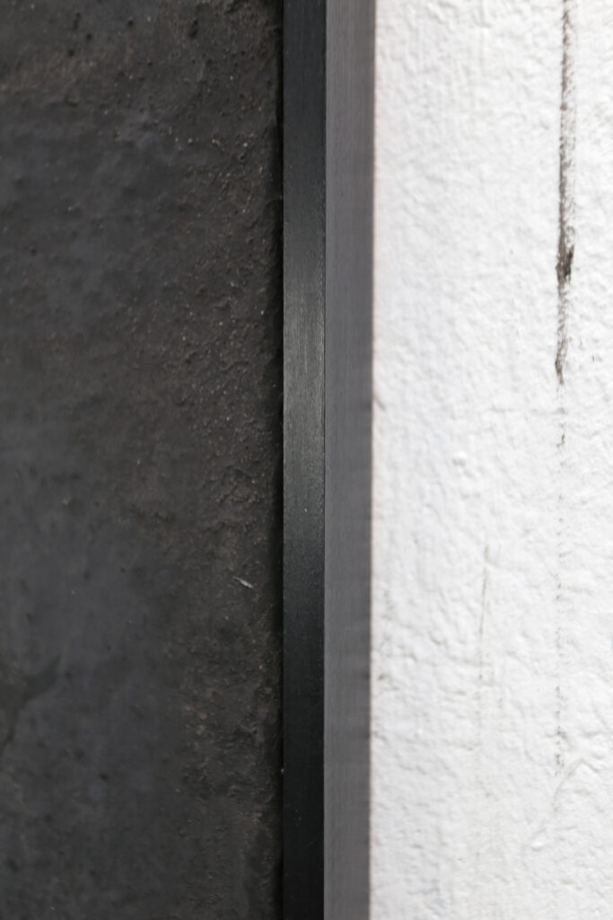 Gerahmt ist das Gemälde mit einem schwarzen Schattenfugenrahmen aus Holz.