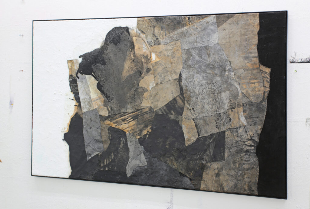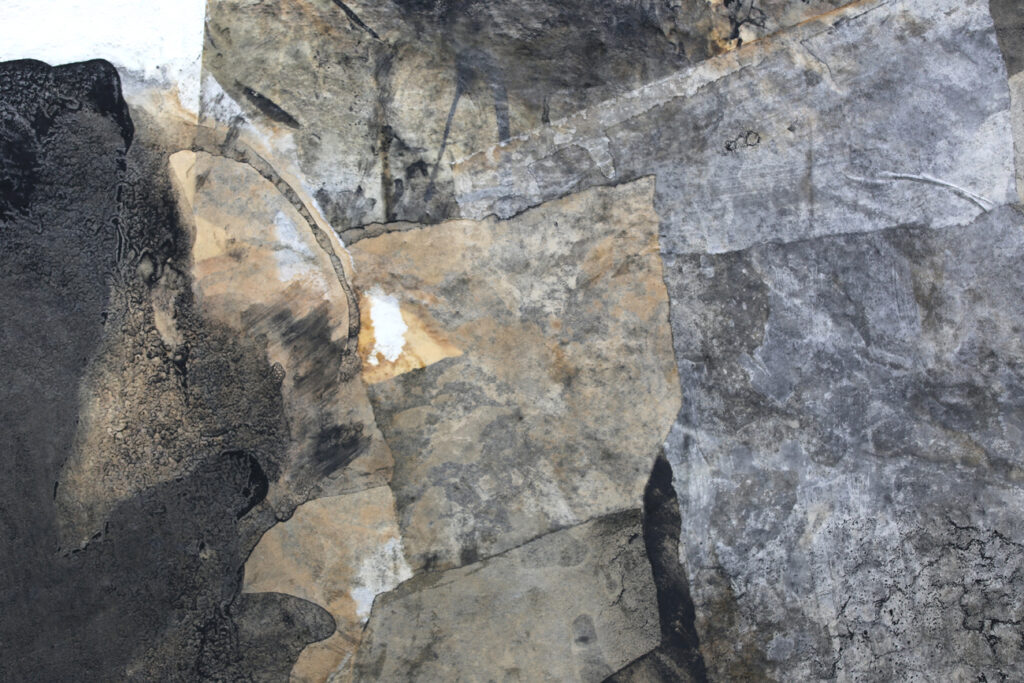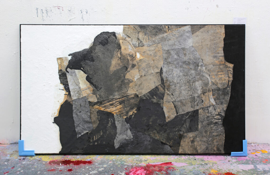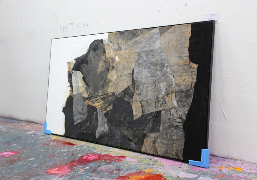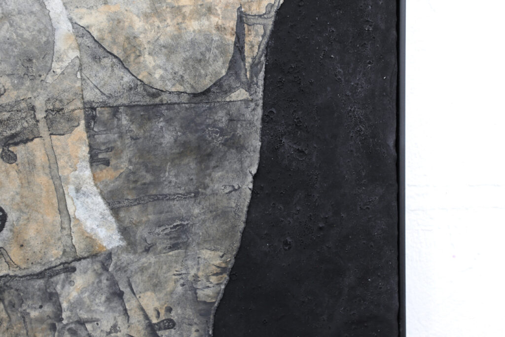 Diese abstrakte Arbeit ist eine informelle Malerei in Mischtechnik, die mit strukturgebenden und unterschiedlichen Materialen gefertigt, wie zum Beispiel Asche, Kaffee, Chinapapier und Pigmente, die in vielen Schichten aufeinanderliegen. Die mit Kaffee und Rußpigment getränkten Papiere sind in dem Bild eingearbeitet und teilweise mit Pigmentschichten wieder überlagert. Dadurch entsteht eine sehr haptische Oberfläche. Das Bild ist sehr dunkel, trotzdem vermittelt es einen warmen und sehr ruhigen Eindruck. Mir war es wichtig, zu zeigen, dass die Welt nicht nur schwarz und weiß ist, sondern dass es immer (egal in welchem Kontext) auf die Zwischentöne ankommt. Sei es ein komplexer Zustand, der zu analysieren ist, sei es ein Gespräch unter Liebenden. Völlig egal – nichts ist je schwarz weiß.