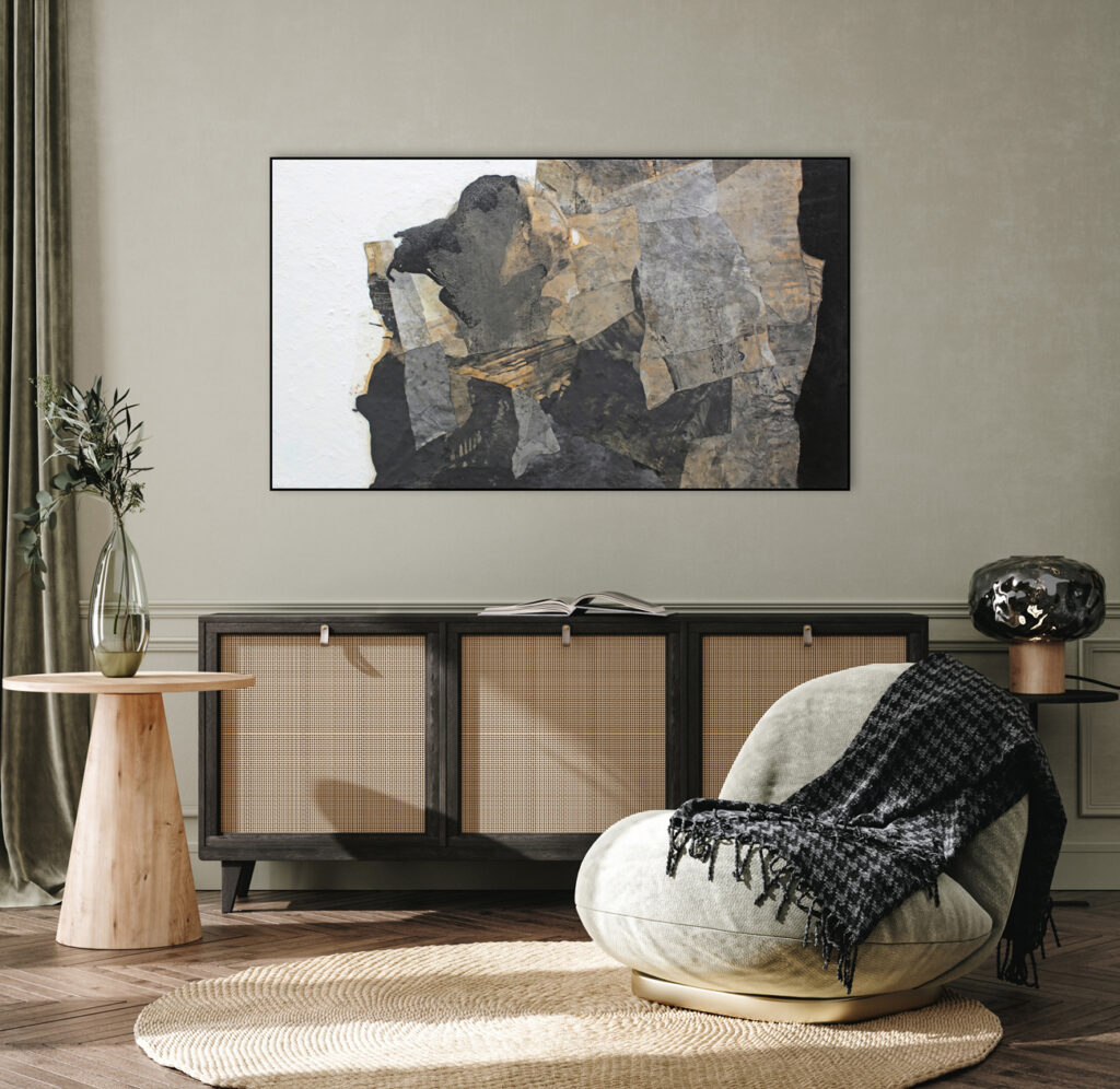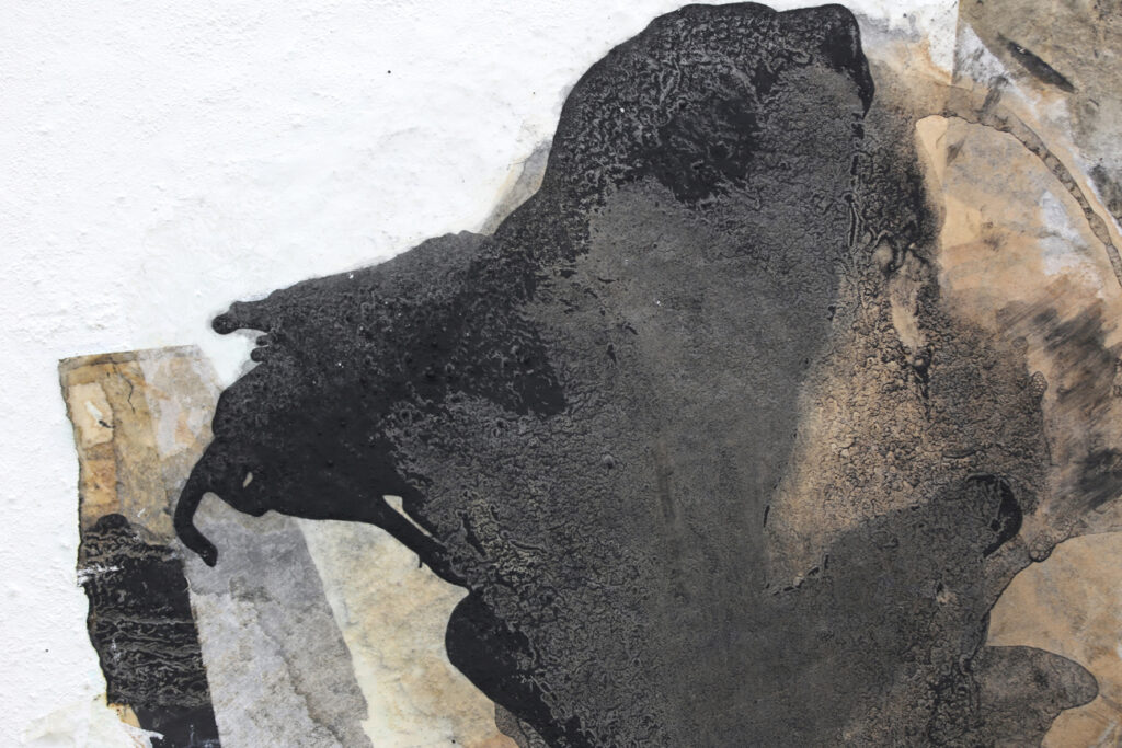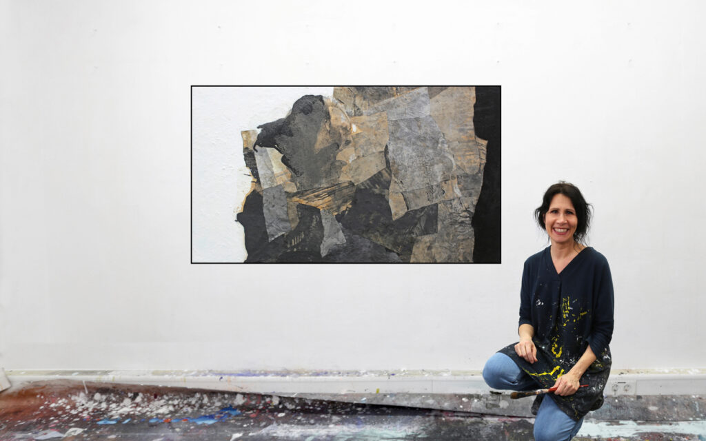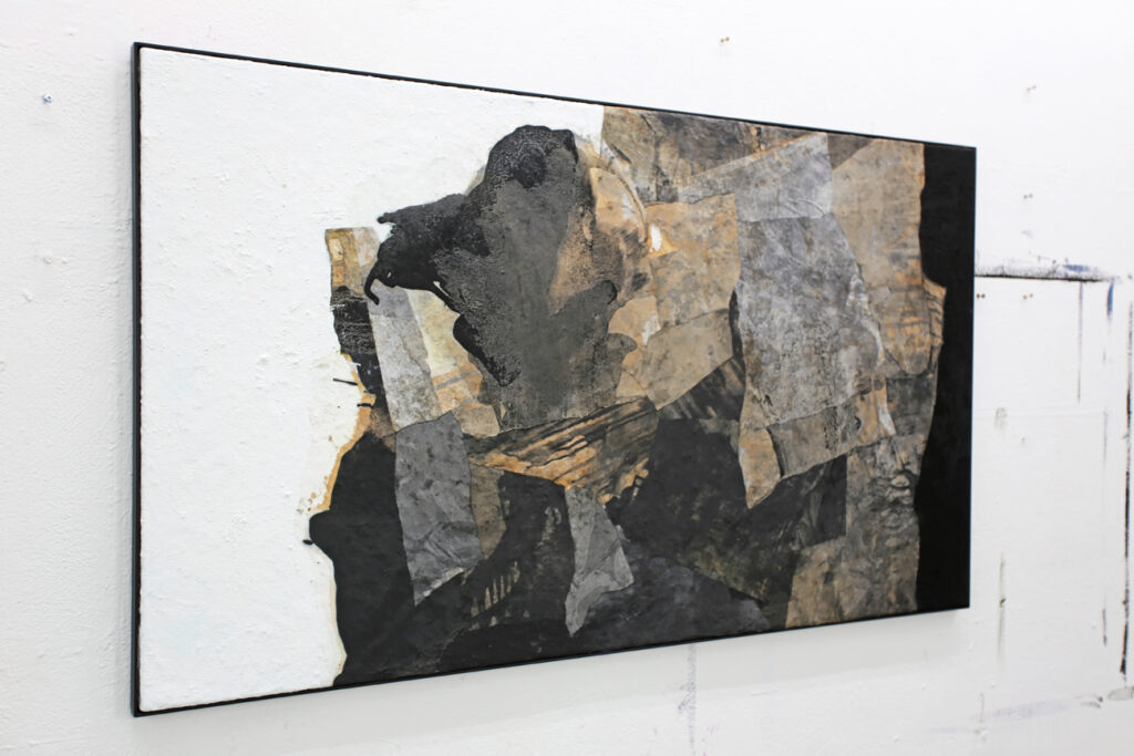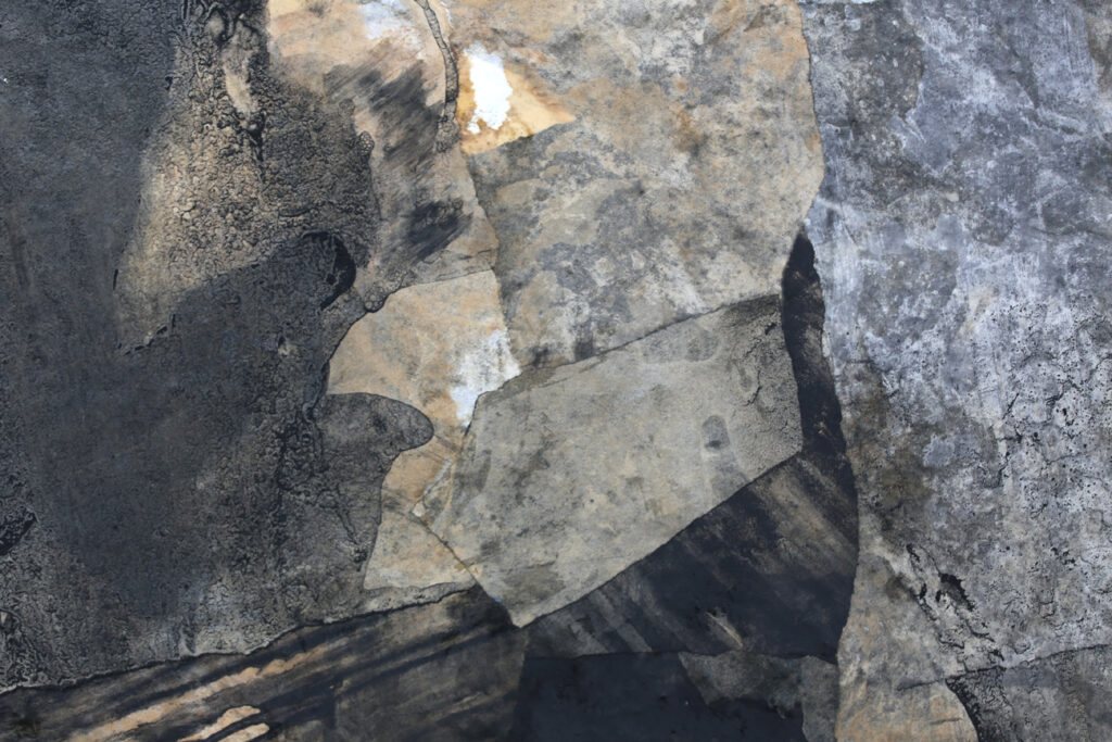 Diese abstrakte Arbeit ist eine informelle Malerei in Mischtechnik, die mit strukturgebenden und unterschiedlichen Materialen gefertigt, wie zum Beispiel Asche, Kaffee, Chinapapier und Pigmente, die in vielen Schichten aufeinanderliegen. Die mit Kaffee und Rußpigment getränkten Papiere sind in dem Bild eingearbeitet und teilweise mit Pigmentschichten wieder überlagert. Dadurch entsteht eine sehr haptische Oberfläche. Das Bild ist sehr dunkel, trotzdem vermittelt es einen warmen und sehr ruhigen Eindruck. Mir war es wichtig, zu zeigen, dass die Welt nicht nur schwarz und weiß ist, sondern dass es immer (egal in welchem Kontext) auf die Zwischentöne ankommt. Sei es ein komplexer Zustand, der zu analysieren ist, sei es ein Gespräch unter Liebenden. Völlig egal – nichts ist je schwarz weiß.